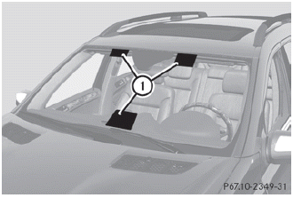 In order to operate radio-controlled equipment, e.g. toll recording systems, areas 1 on the windshield are permeable to radio waves. In these areas, you can install radio-controlled systems.
