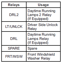 The vehicle may not be equipped with all of the fuses, relays, and features shown.
